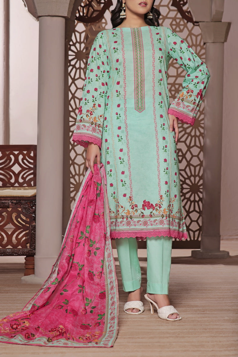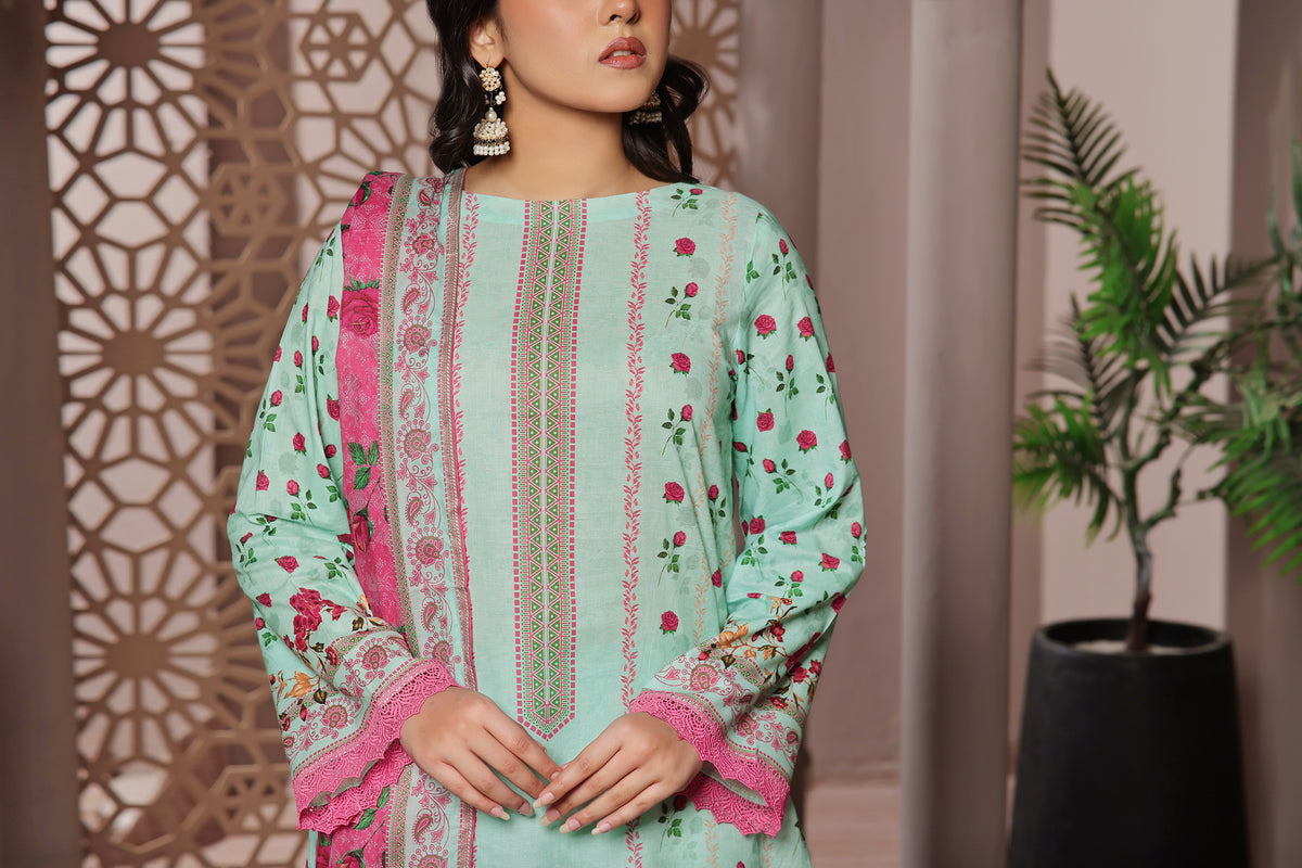 DESCRIPTION: TOP QUALITY THREE PIECE PRINTED LAWN DRESS WITH LAWN DUPATTA