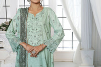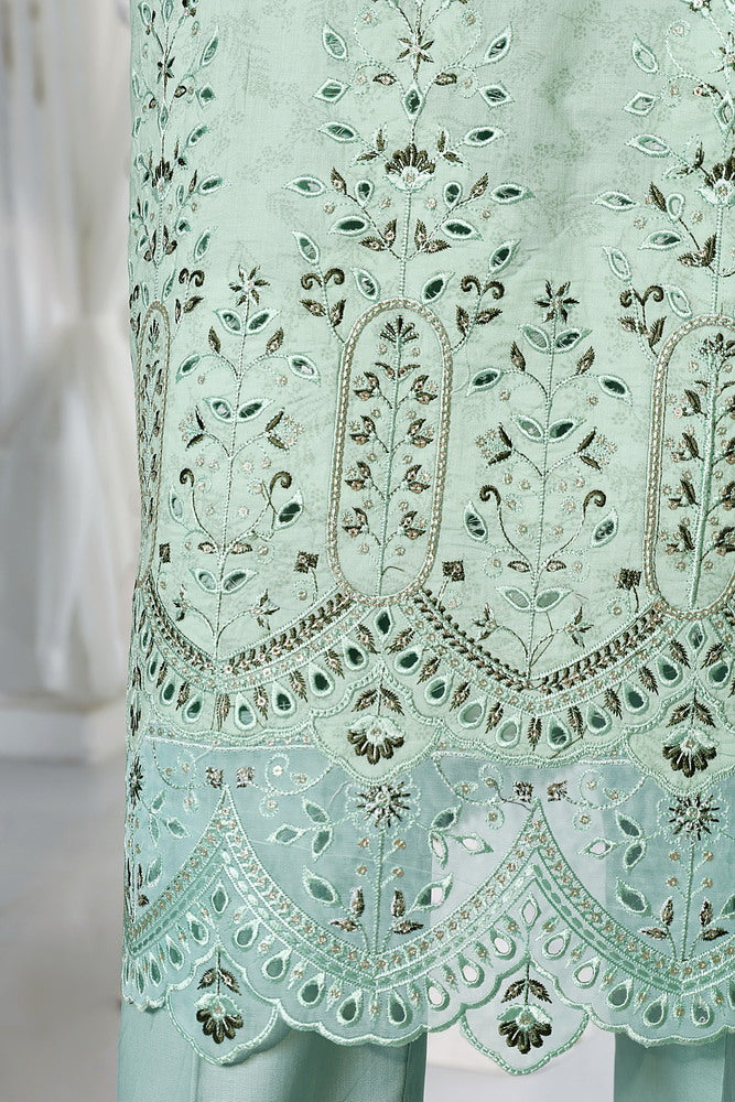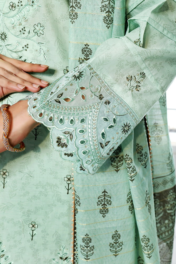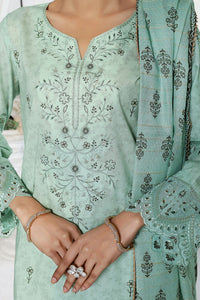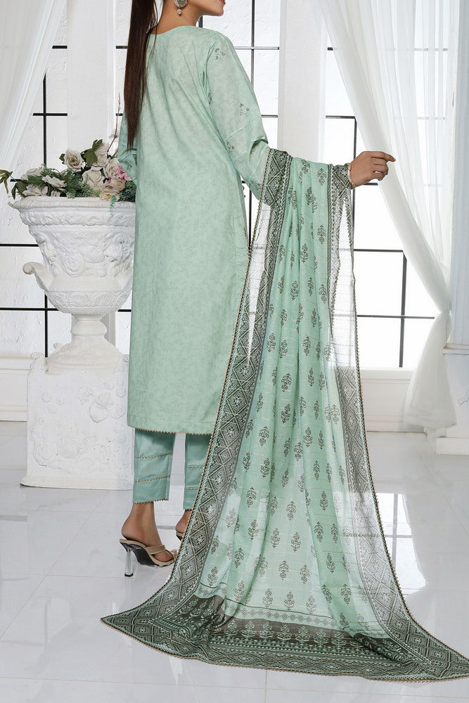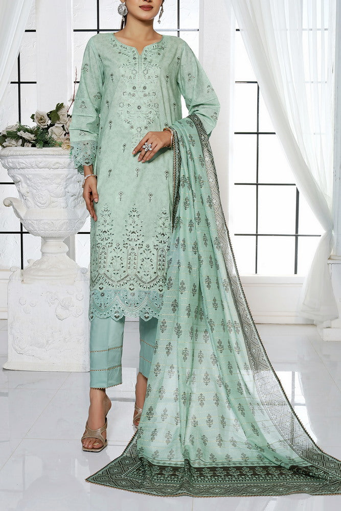 DESCRIPTION: TOP QUALITY THREE PIECE UNSTITCHED EMBROIDERED DRESS WITH PRINTED ZARI DUPATTA