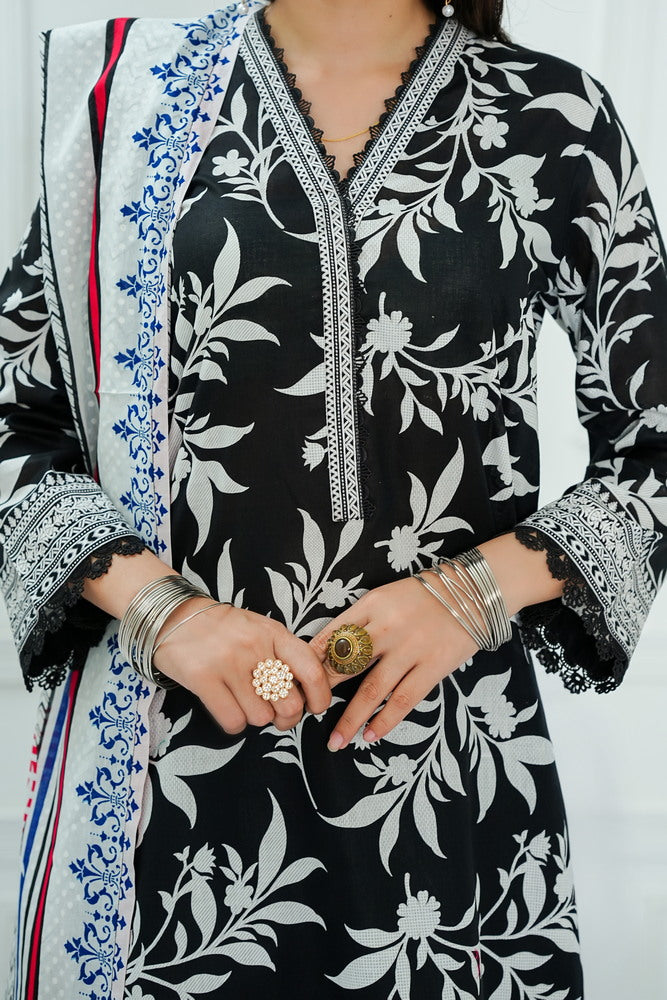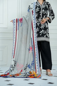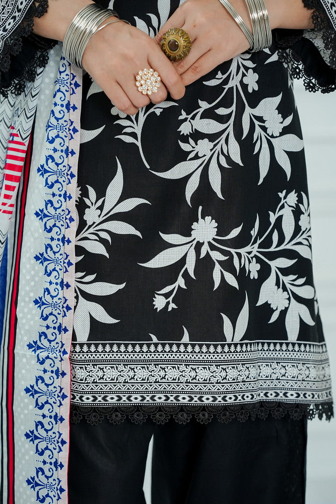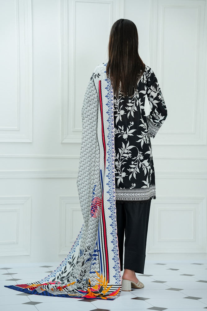 DESCRIPTION: THREE PIECE PRINTED UNSTITCHED PRINTED LAWN DRESS.