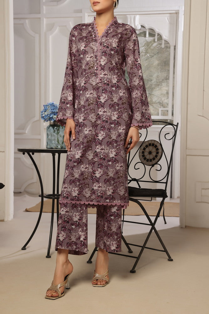 DESCRIPTION: TWO PIECE PRINTED UNSTITCHED LAWN SHIRT WITH DYED TROUSER.