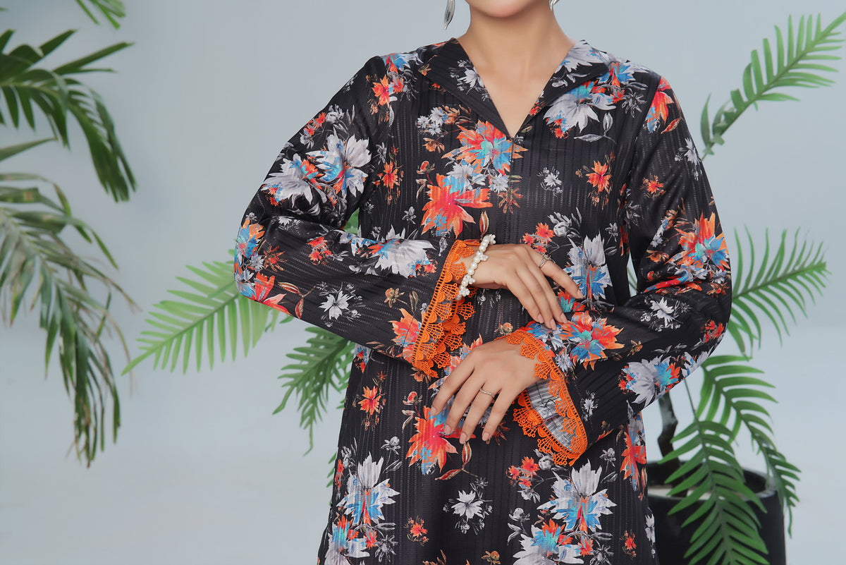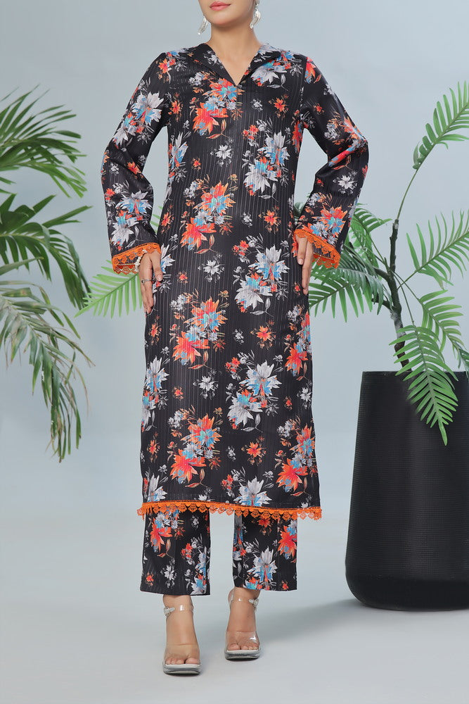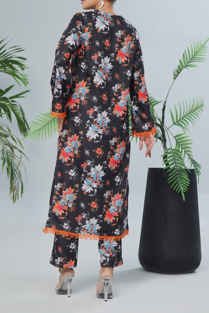 DESCRIPTION: TWO PIECE SELF PRINTED UNSTITCHED SHIRT AND TROUSER.