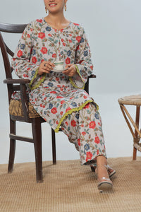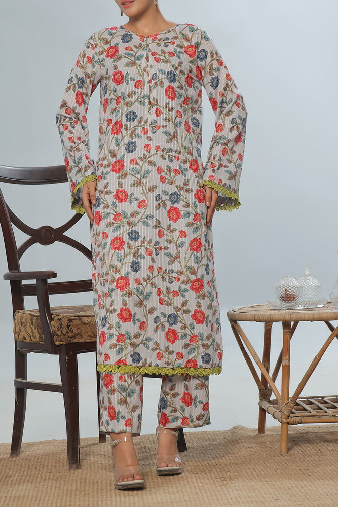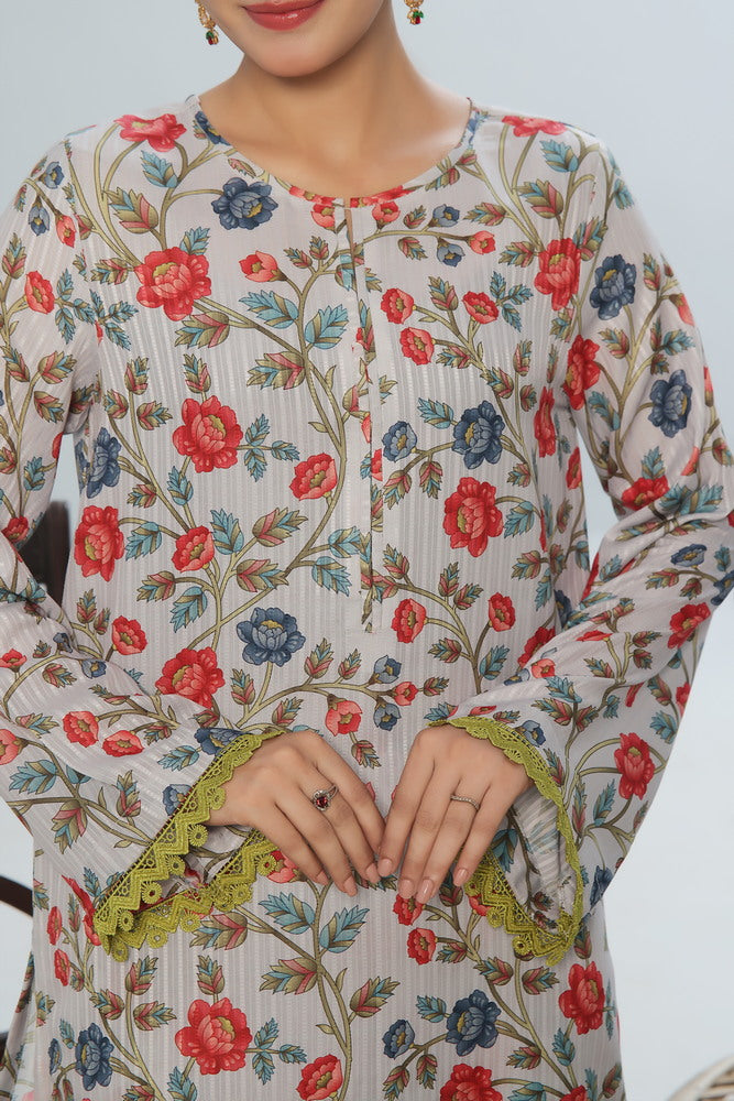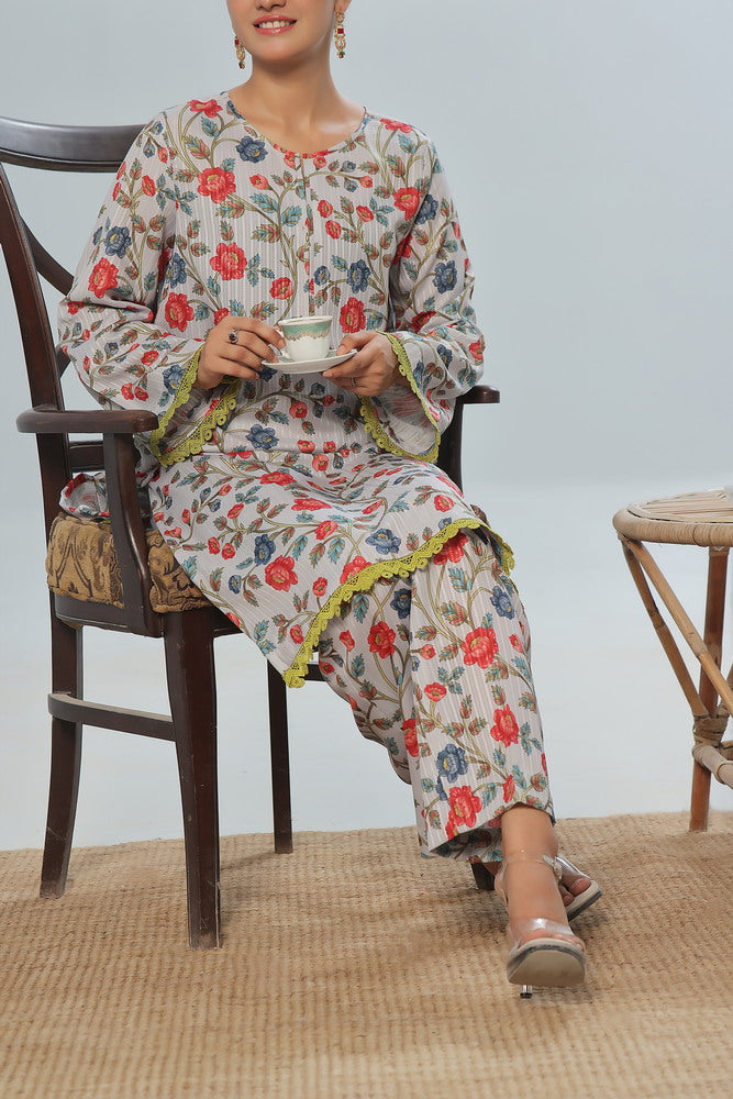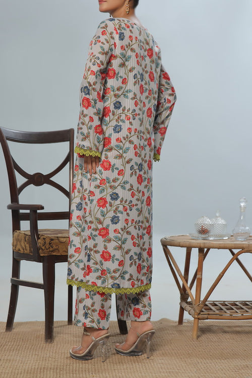 DESCRIPTION: TWO PIECE SELF PRINTED UNSTITCHED SHIRT AND TROUSER.