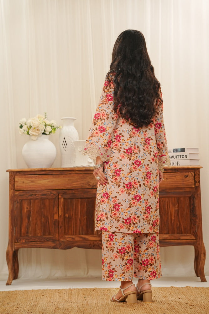 - Shirt : Printed Shirt With Embroidered Sleeves and Daman