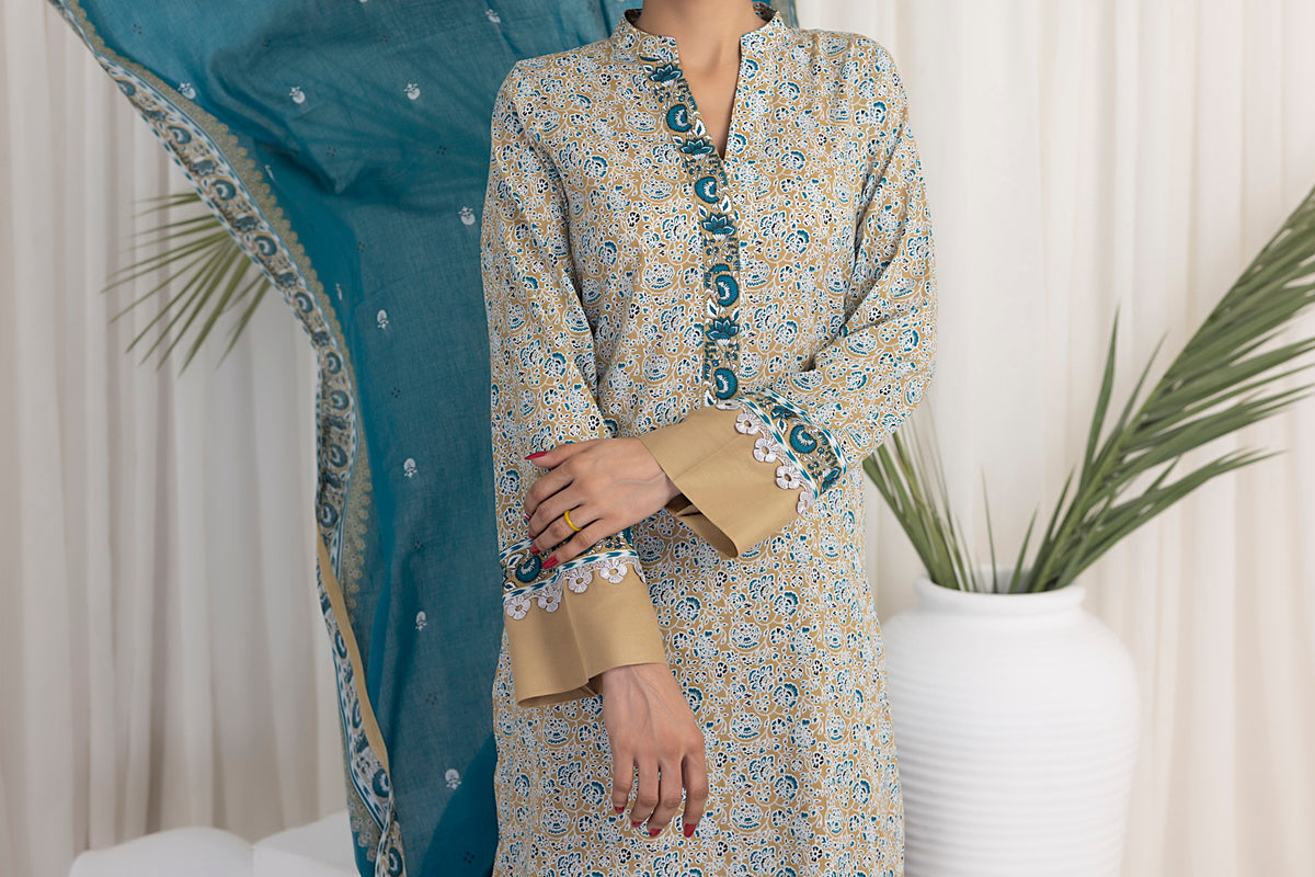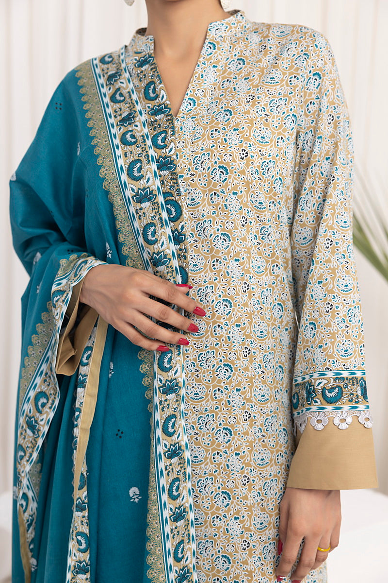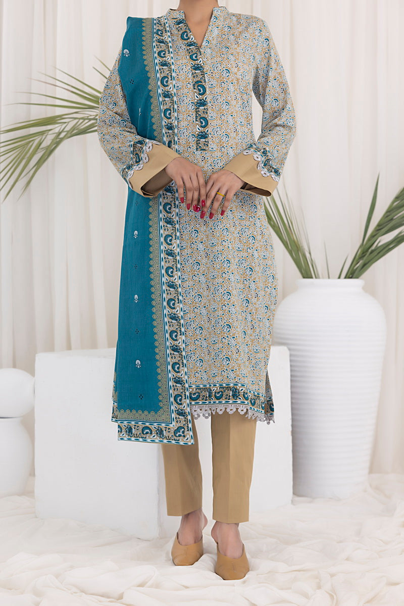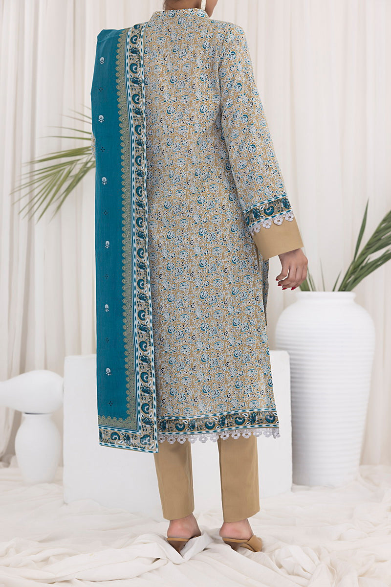 DESCRIPTION: THREE PIECE PRINTED UNSTITCHED PRINT LAWN DRESS.