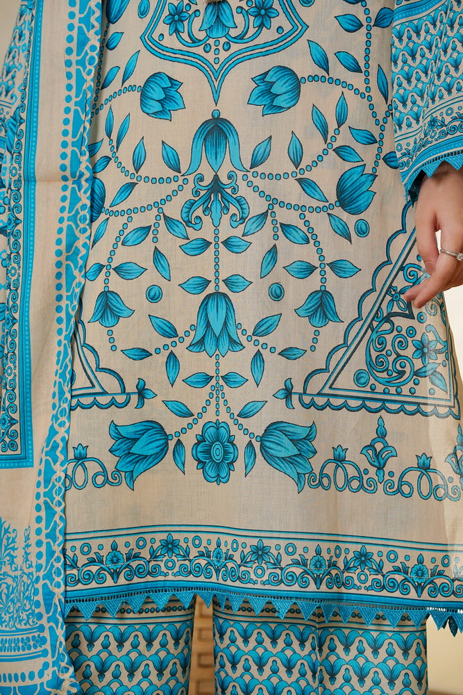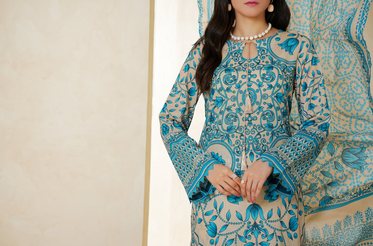 DESCRIPTION: TOP QUALITY THREE PIECE UNSTITCHED LAWN DRESS
