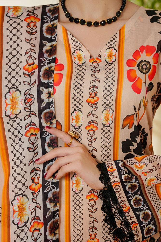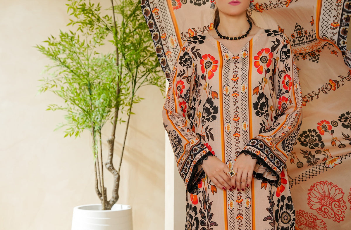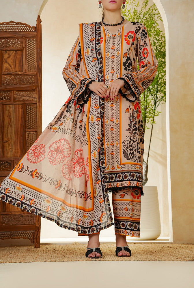 DESCRIPTION: TOP QUALITY THREE PIECE UNSTITCHED LAWN DRESS
