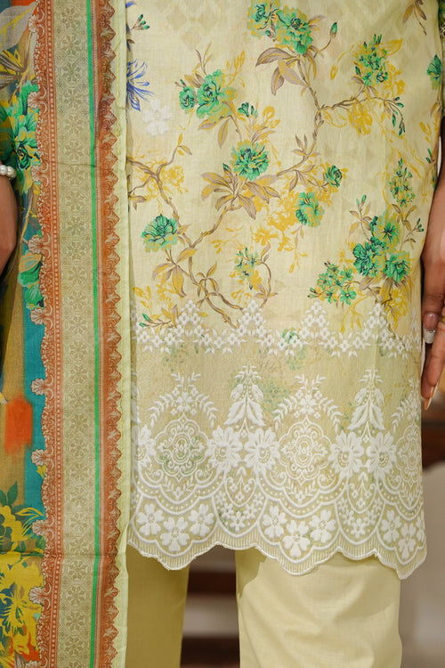 DESCRIPTION: DIGITAL PRINTED LAWN THREE PIECES STITCHED DRESS.