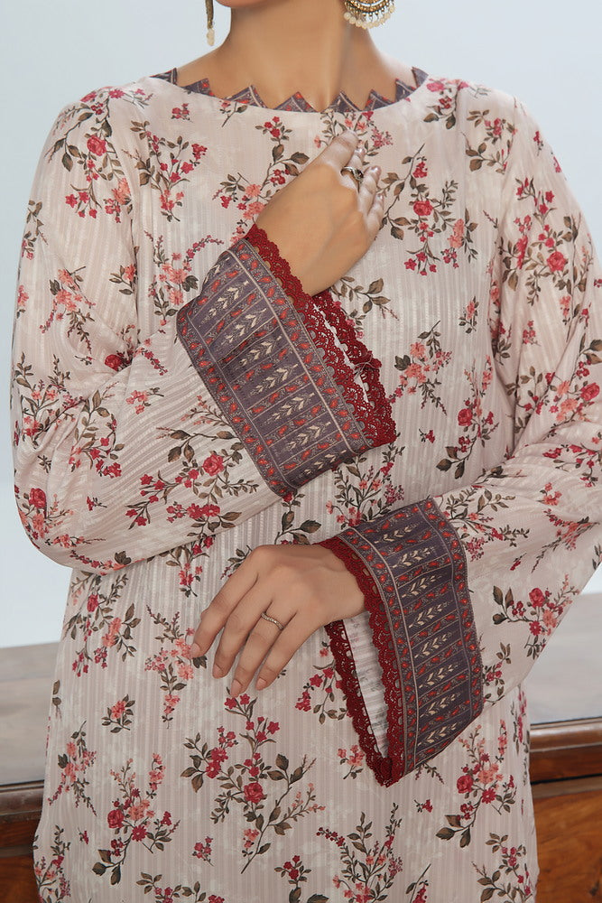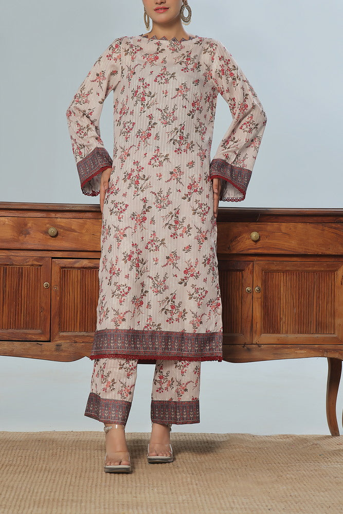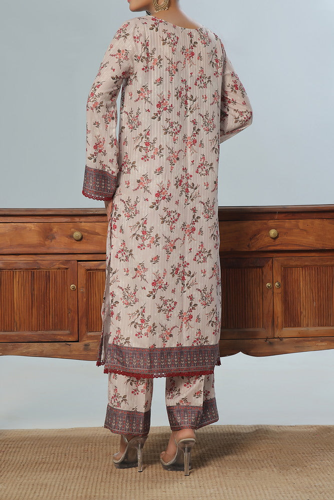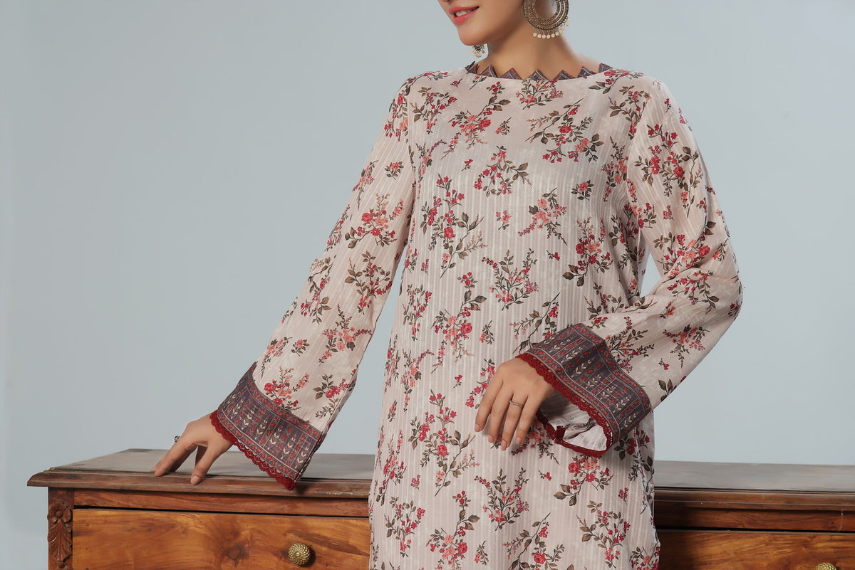 DESCRIPTION: TWO PIECE SELF PRINTED UNSTITCHED SHIRT AND TROUSER.